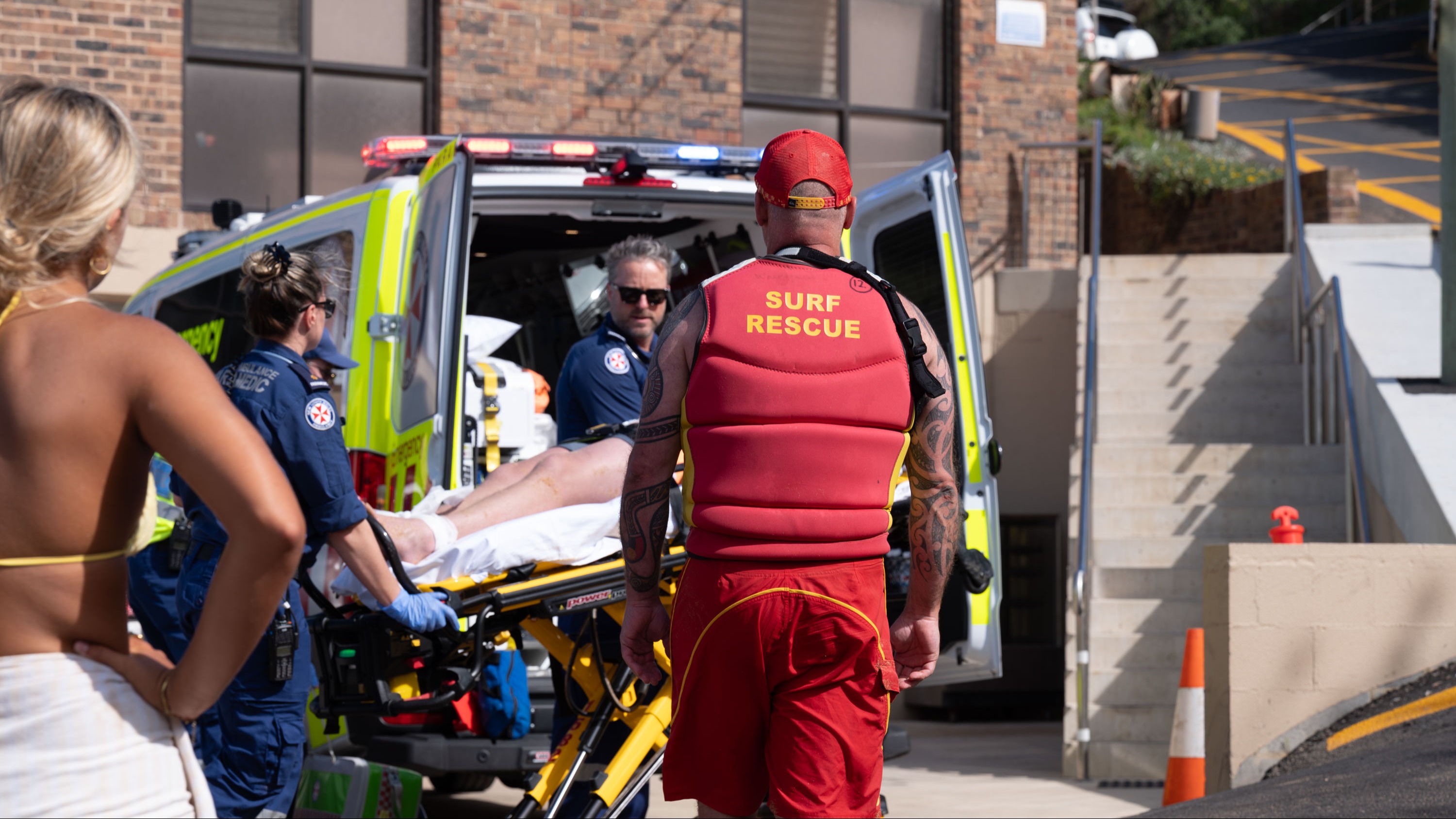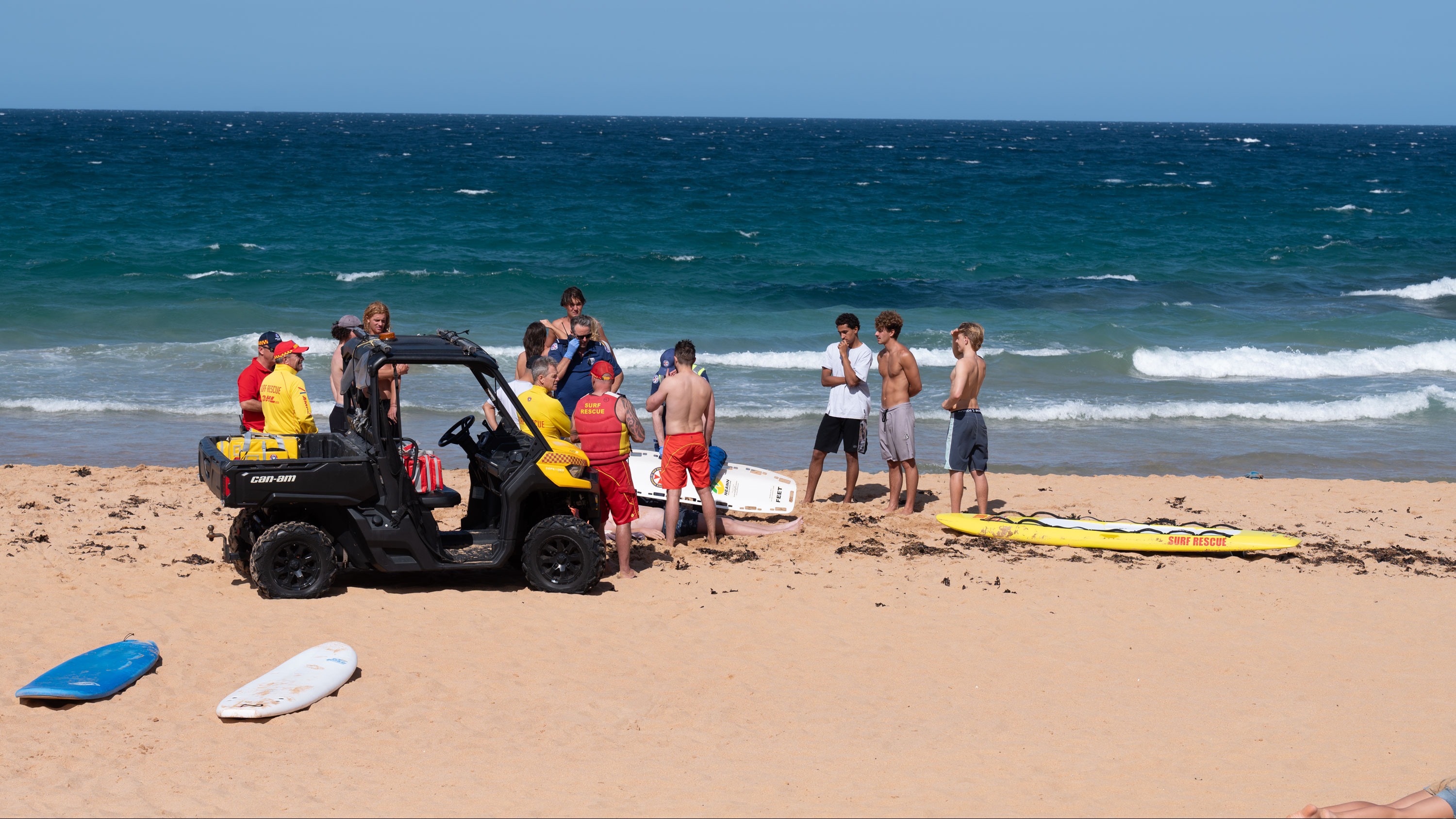 Thankfully, paramedics were already on scene by the time the group reached the beach. The team moved swiftly but carefully, stabilising the boy’s neck, placing him on a spinal board, and transferring him to the ambulance. The paramedics applied a neck brace, assessed him for potential spinal and internal injuries, and transported him to hospital.