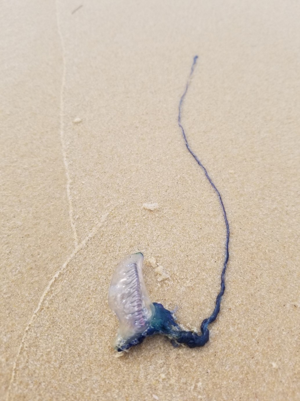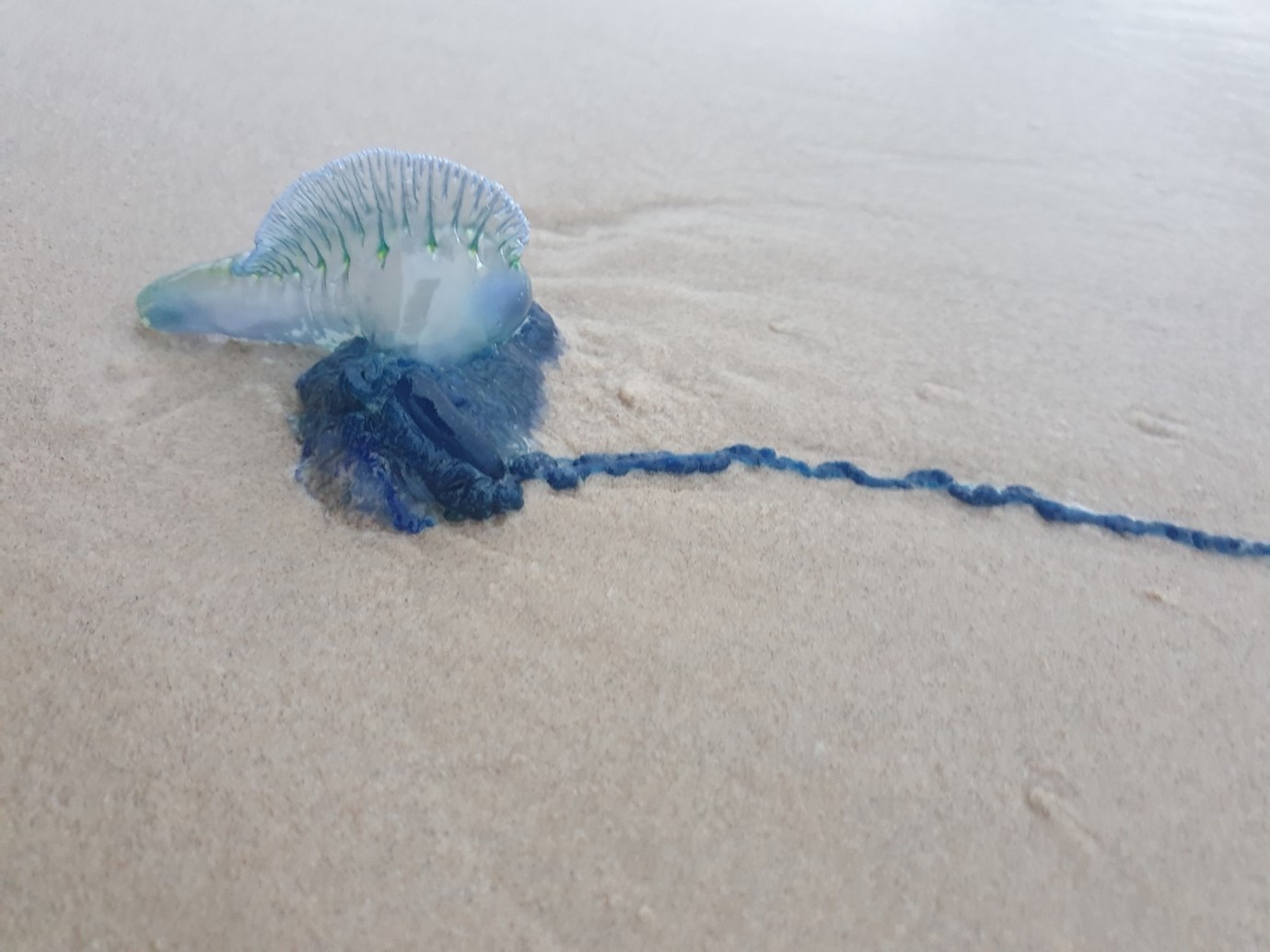 Bluebottle with long tentacle (Dr Amandine Schaeffer, UNSW, Rainbow Beach)