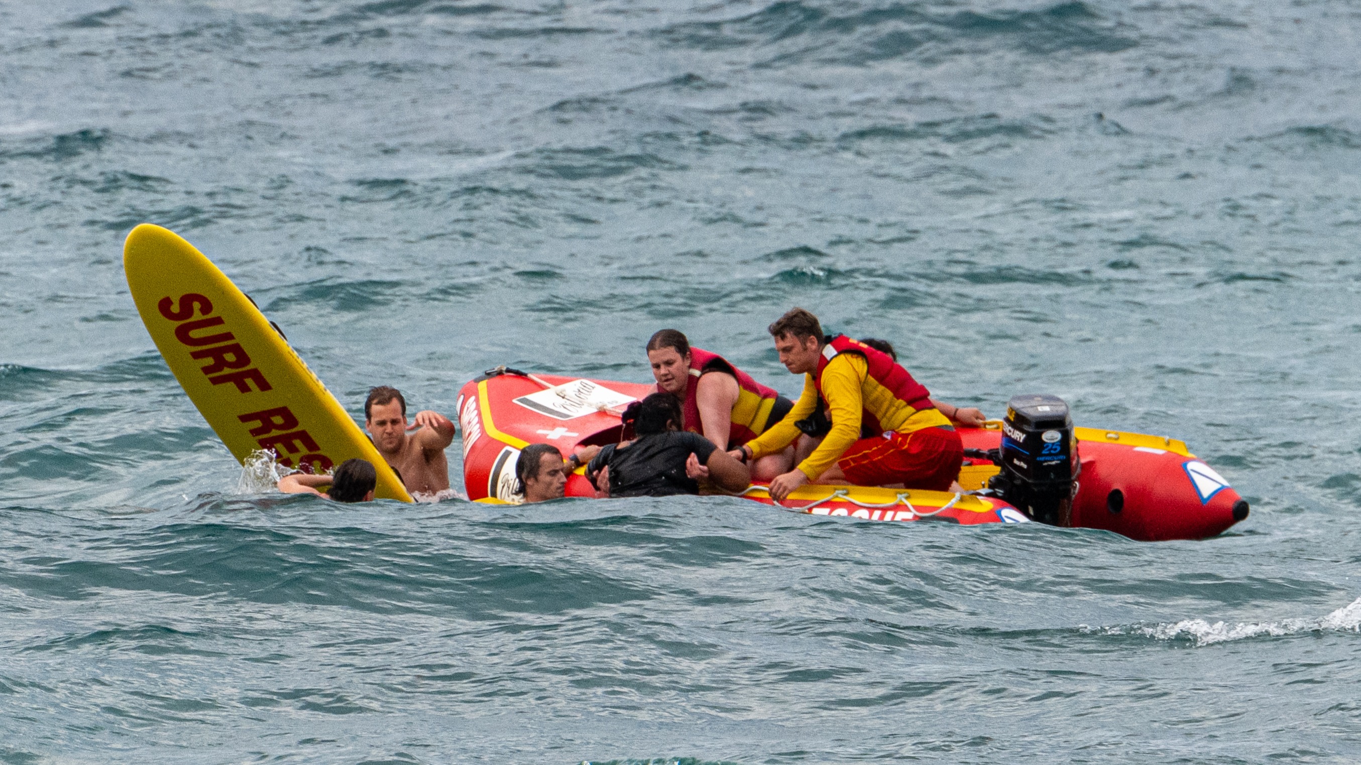 One moment the swimmers had been having fun, laughing and enjoying themselves between the red and yellow flags. Suddenly, a rogue wave dragged them beyond the sandbank. Gasping for air and unable to fight the current, the terrified group were quickly out of their depth and struggling to stay afloat.